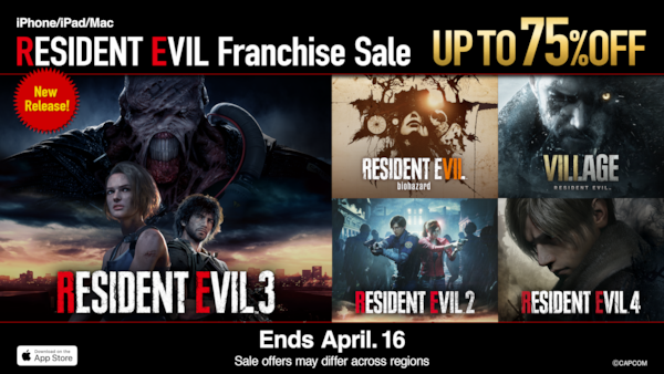 To celebrate the launch, Resident Evil 3 is on sale for a limited time. In addition, Resident Evil 2, Resident Evil 4, Resident Evil 7 biohazard, and Resident Evil Village are also currently on sale via the App Store, offering these fan-favourite Resident Evil games at great discounted prices of up to 75% off.